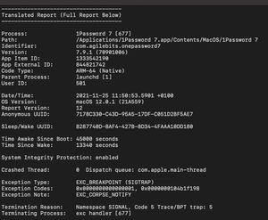 Several times 1Password crashed on my new Macbook Pro M1 Pro. Does anyone have the same problem?
