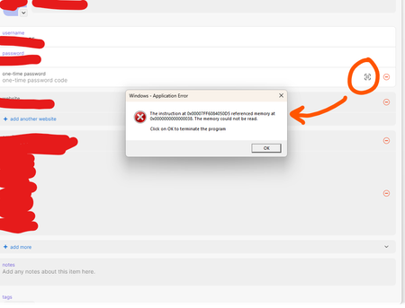 We'd love to check this out in more detail for you. In order for us to do that, I'll ask you to send us a short email at support+windows@1Password.com, and include: