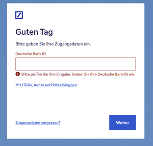 Hello, I am struggling with the Deutsche Bank Germany Website https://meine.deutsche-bank.de/#/login I can't get 1Password to fill and save the "Deutsche Bank ID". Any ideas? Thanks a lot! 1P...