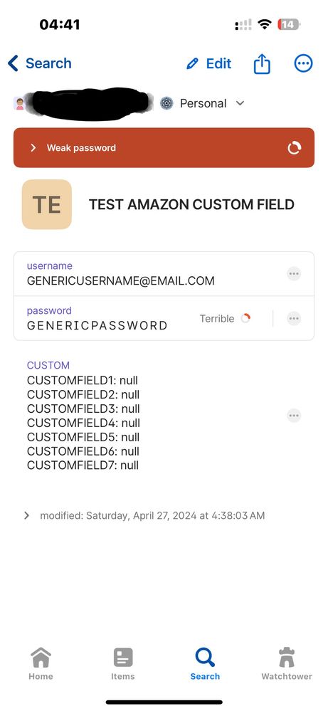 - How did you add that custom field, using 1Password 8 on your iPhone or on a different device?