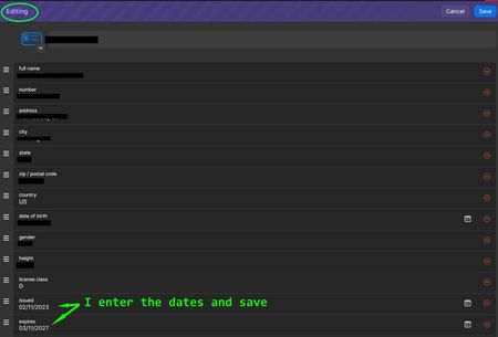 When editing my drivers license details, I enter the "issued" and "expires" dates and when I save it the dates magically change to one month too late?