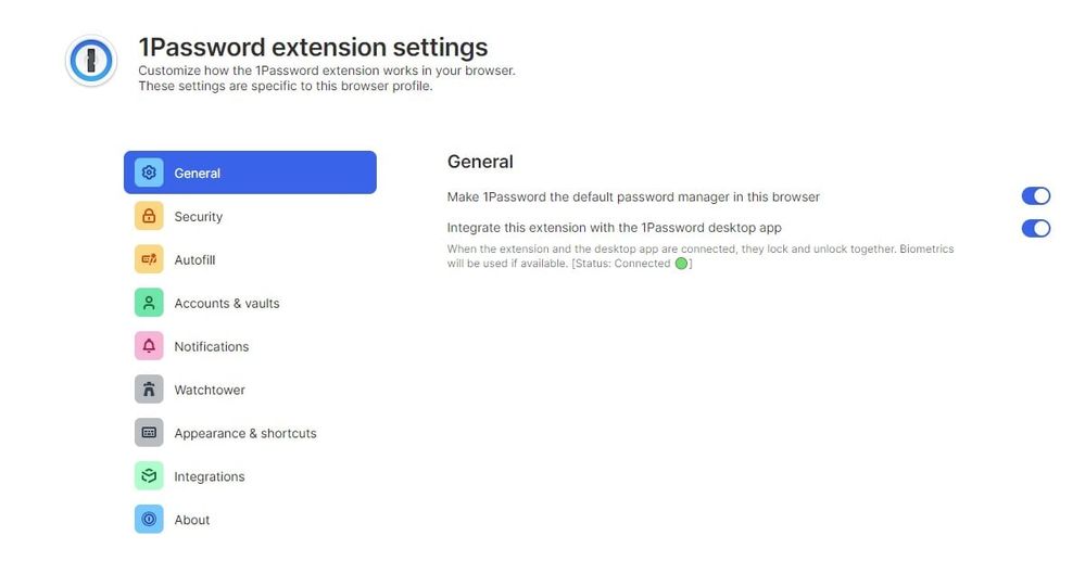 To navigate the web, I'm using the browser internal favorites function to store my website urls. Whenever a website asks for a login, the browser extension automatically finds the correct login from 1Password and offers autofill, which I accept. That's about the only interaction I use with the browser extension: confirming the autofill offer. For serious work beyond that, the browser extension window is simply too small and it's not possible to move it, so I'm using desktop app for everything else.