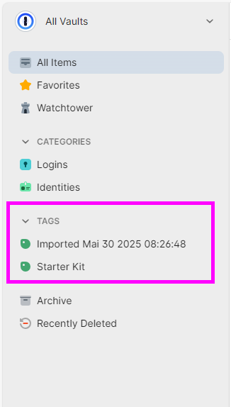 Hi, I recently started using 1Password. After importing all my passwords from the previous password manager, I find auto generated tags in my 1Password. How can I delete these tags?