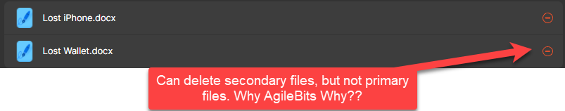 (On Windows client) It seems the user cannot right click and delete the primary attached file. Is this a bug or just functionality not built out yet? One has to completely re-create the Document entry to remove the file. The only option is to 'replace' which baffles me.