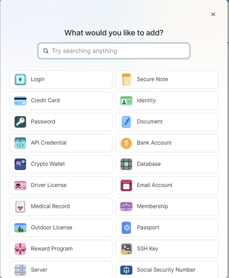 Thanks for reaching out! The list of categories in your screenshot looks correct to me. Some users who are part of a 1Password Business organization may see more options if their administrator has decided to create new item categories for their organization. Creating new categories is currently being tested as part of a beta for 1Password Business: