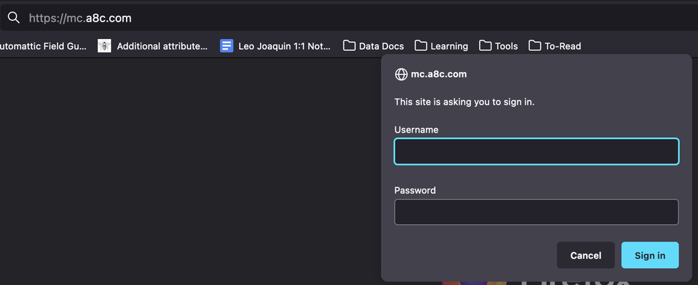 Hi there, there's an internal site that requires credentials every time I access it. It's not a regular login, it's basically a new small window, so 1Password doesn't offer the possibility to backfill the user/password fields.