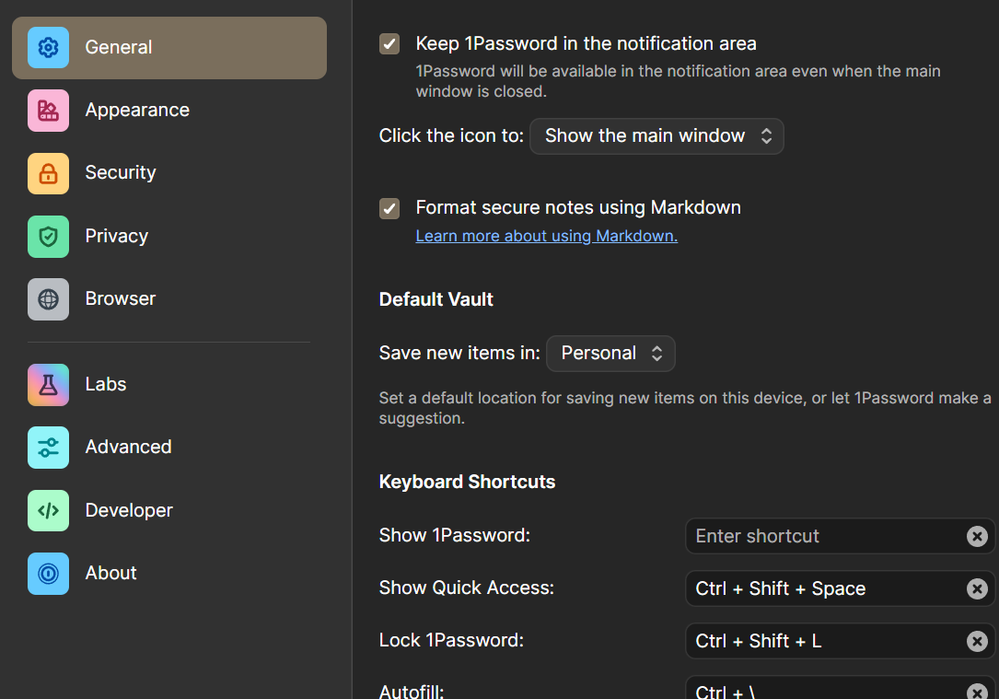 - In 1Password's Settings (see above), choose the General tab.