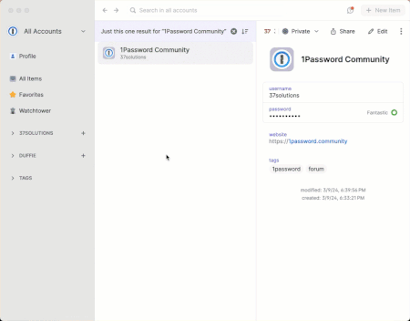 I'm using 1Password desktop on my Mac. Whenever I click on the drop-down menu next to a username, password, or any fields in the item, it opens and closes the "All Accounts" vault list instead.