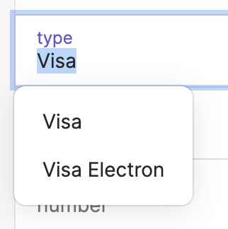 1. I'm adding a new Credit Card and a get to the "type" field.