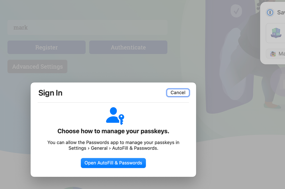 That being said, the issue shouldn't be occurring every single time that you try to use a passkey in Safari. So that I can learn more, are you able to reproduce the issue using this test website: https://webauthn.io/