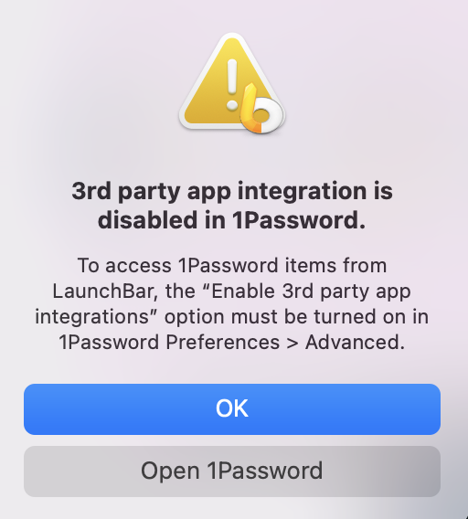 When LaunchBar starts, I get an error message from LaunchBar regarding 3rd party app integration being disabled, and the need to enable 3rd party app integrations in 1Password preferences. However that option is not in the preferences for 1Password 8. It was an option in the preferences for 1Password 7. I uninstalled 1Password 7 before installing 8, but there must me a remnant of 1Password 7 hanging around.