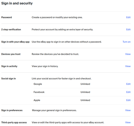 eBay offers no passkey option