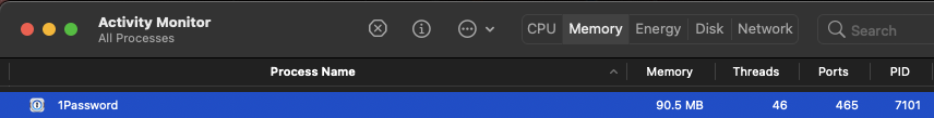 Have you tried 1Password 8 yet? We are indeed using Electron for some elements of the app, but we’re strongly focused on delivering performance as a feature. Using Rust for the heavy lifting has enabled us to do that. I'm signed into 4 accounts and have thousands of items and am sitting at 90.5 MB of memory usage: