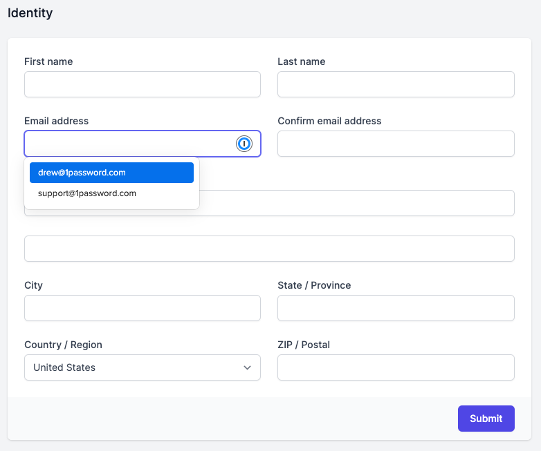 Hello, would you guys be willing to take a look at how email addresses offered for autofill when it comes to entering registration details, online shopping checkouts, etc? With the increased use of services like AnonAddy, SimpleLogin, not to mention iClouds upcoming hide my email in iOS 15 and MacOS Monterey having them tied only to prefilled Identity cards in 1Password is becoming much less feasible. As pictured, I think the way Apple Autofills our emails for this situation is better than what's offered with 1Password today, but could still be improved.