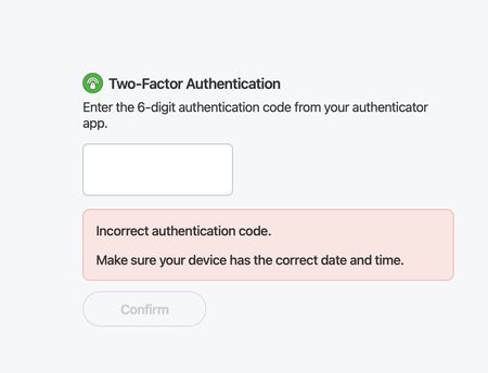 4 years agoError "Incorrect authentication code. Make sure your device has the correct date and time"