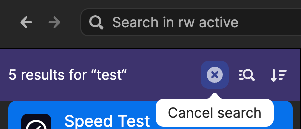 Currently, when I type CMD+F cursor is taken to the Search field, so I can type a search word and results are filtered. Now, there is no way to clear the search results other than dragging your mouse over the little X (Cancel search) option. Please make the ESC key clear the search results (Cancel search shortcut).