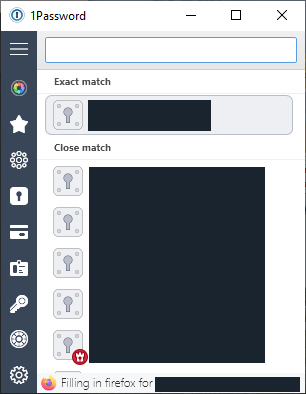 I've been playing around with 1Password 8 and one thing I discovered and was rather annoyed with was that the browser plugin would not show me exact and close matches anymore.