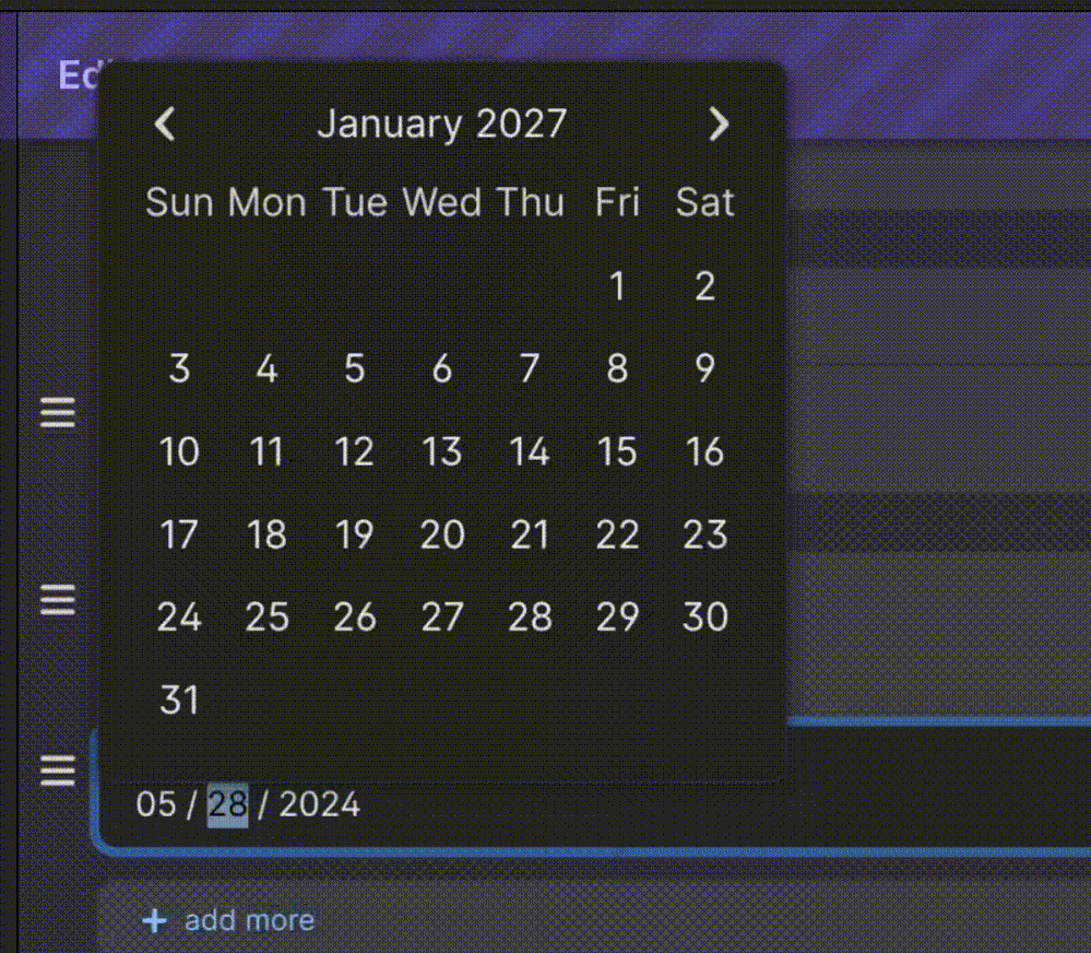 Potential Improvement: Date Picker Doesn't Let You Type a Date, and Arrows Bounce Up and Down