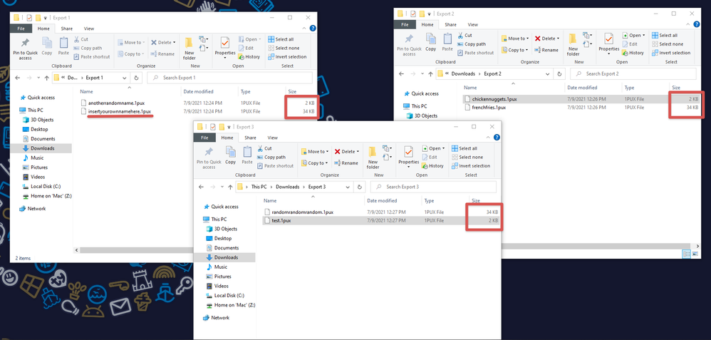 So the question is why not let us pick the names of the export files? And why does the size vary if it's the same account?