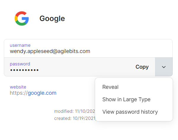 With this in mind may I humbly suggest that the use of hover for these UI elements is not a super great fit in a desktop application. Whist they make the UI look clean there is a discoverability issue that I accidentally demonstrated here. Perhaps the decision to only reveal the arrow on hover could be reconsidered to help prevent others hitting a similar issue in the future. Anyway, just a suggestion. I'm glad I now know how to access the password history in-app.
