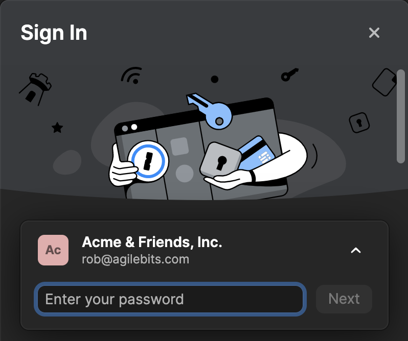 This makes setting up a new device an absolute breeze. As long as you've signed in to iCloud, these accounts will be available to sign in with just your password. And this too is essentially the same security model as your standalone iCloud vault. The Secret Key is required to sign in so only someone with access to your iCloud account can sign in using your password.