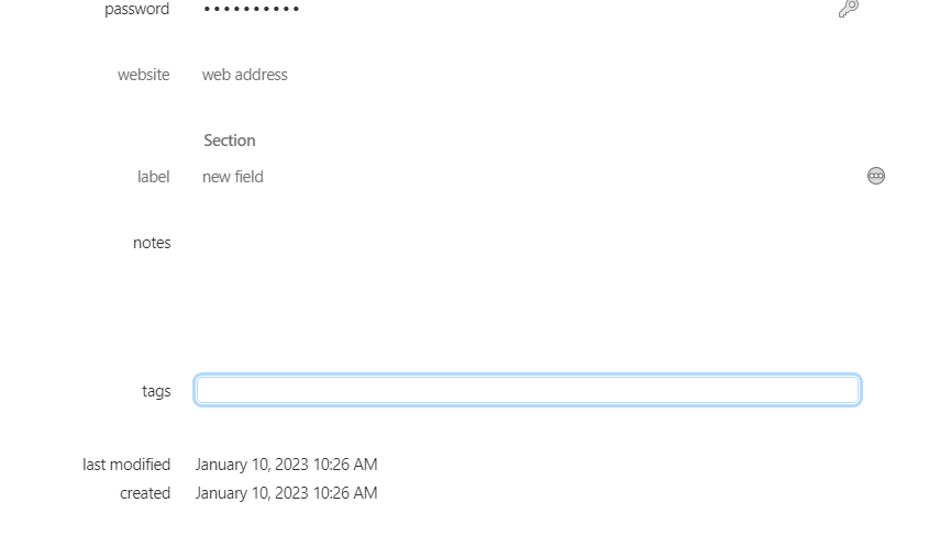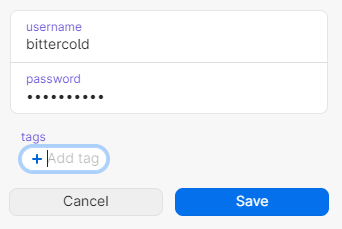 When I am adding a new credential or other item, the tag field is not populated with existing tags. It would be helpful to have an auto-complete or optional drop-down of existing tags so that future me doesn't imagine categories that past me decided on.