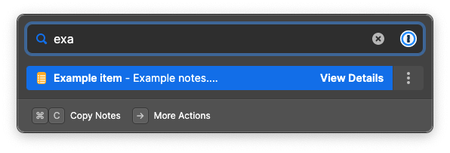 Since Quick Access offers shortcuts for the main fields of each item type, saving items as logins or passwords would create the possibility to open Quick Access, locate an item, and copy its password all without touching your mouse or opening a new window. Each item also has its own notes field that function similarly to the bodies of secure note items. Here's an example: