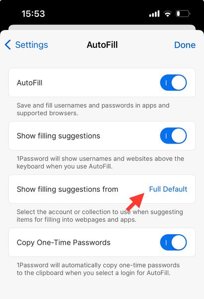 I have three 1Password accounts and multiple collections that contain different selections of vaults. One of them is called “Full Default” and set to be my default collection for filling suggestions....