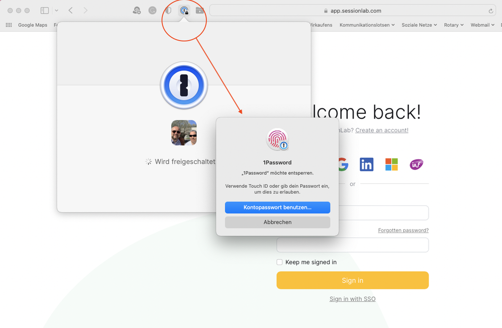 ... but it comes up when I click on the icon of the safari extension at the top end of the safari window. Both bring up the same kind of 1PW window, but only the one on the safari top brings up the fingerprint window. Why this?