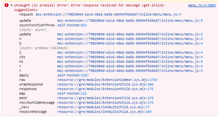 Firefox extension stops working with JS error