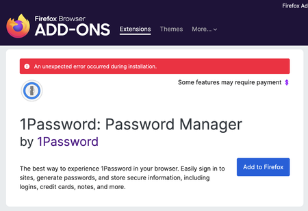 Getting the following error trying to install on a new MacBook and brand Firefox install... old Mac/firefox still works. Any advice?