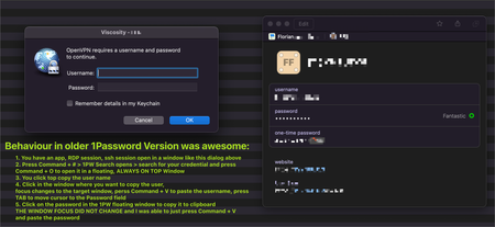 4 years agoI'm happy that we were able to fix this for you. Note: we are discovering issues that make this difficult for the detached windows in 1Password 8 (which is currently in early access alpha/beta). But at least we can have this fix in version 7. And I hope to get it into version 8 at some point too.