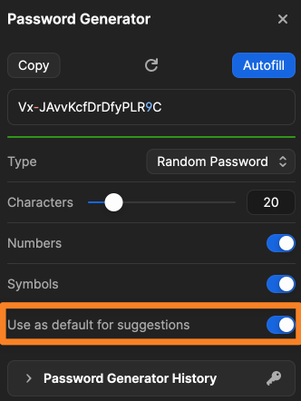 From there, you can also save your preferred password parameters for suggested passwords in your browser: