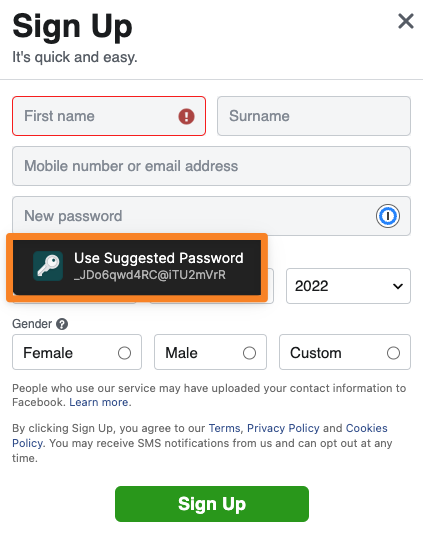 Those suggestions will appear in your browser when registering new accounts: