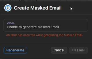 Thanks for letting us know about this! Are you still running into trouble with creating a Masked Email? We've made some changes that should have resolved this for you. Let me know!