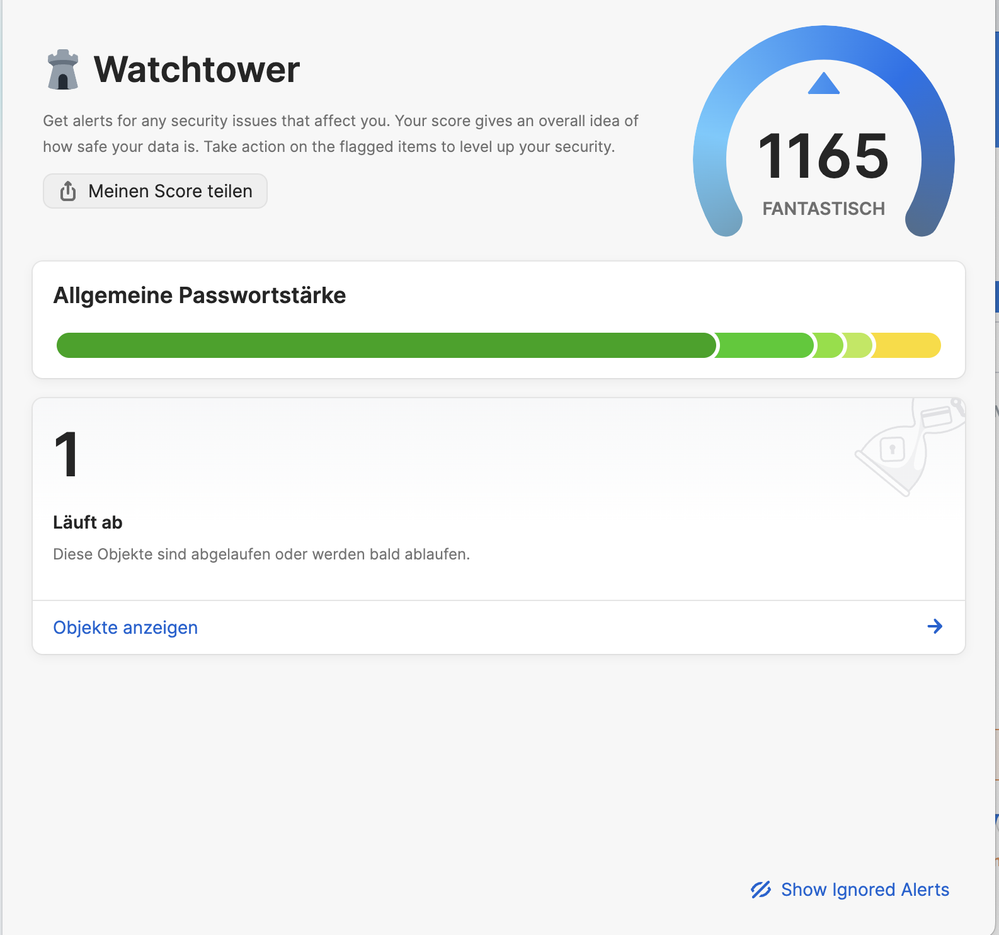 In Watchtower the description and on the right "Show ignored items" should be named "Zeige ignorierte Einträge"