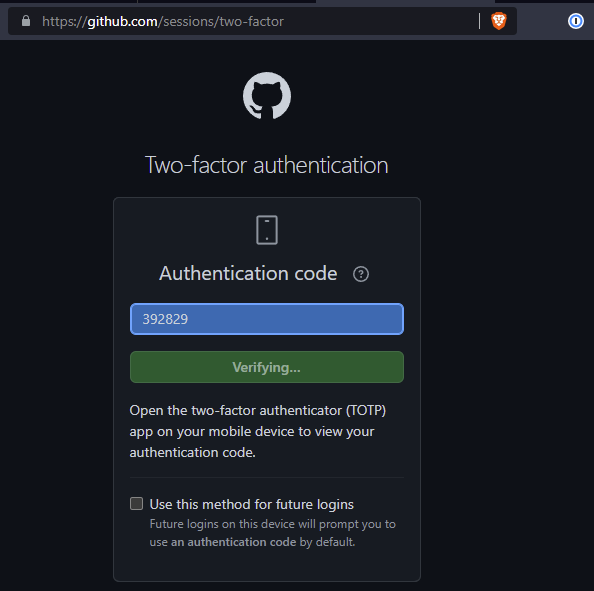 https://github.com/loginNext I have to enter the 2fa code, which 1Password is autofilling.