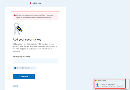 I'm having a little big problem adding 1Password as Passkey on Login.gov.
