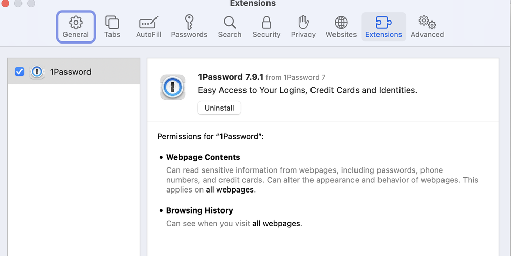 1Password Version: 1Password 7 Version 7.9.1 (70901006) Mac App Store