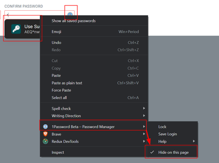 I use 1Password and work as a software developer primarily on web applications. I prefer to disable 1Password when working on something because of the code injected into forms (and the "network" requ...