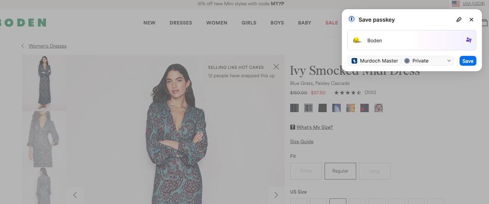 Thanks, 1P_Dave​! This is happening on other websites as well—when I'm just browsing and not trying to log in, I get the pass key prompt. On Boden, it happens on every page, starting at https://us.boden.com and any new subpage, or even if the URL refreshes on a product page by changing an item color, for instance.
