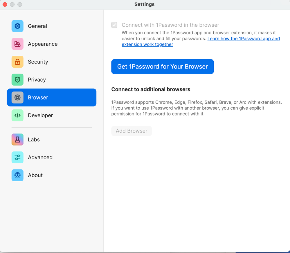 - Right-click on the 1Password icon in your browser's toolbar and click Settings.