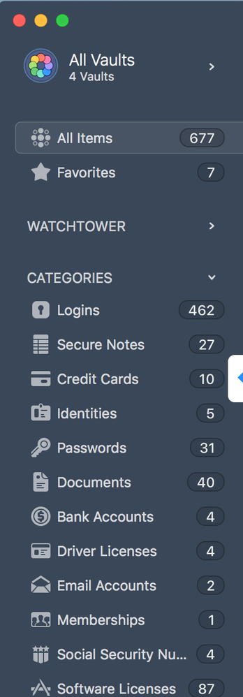In the application, in the left panel, I see the family name "The Jahn Family". Where is the "All Vaults" option like in the v7 Mac version of the application? I don't see a way to select all vaults. What am I missing?