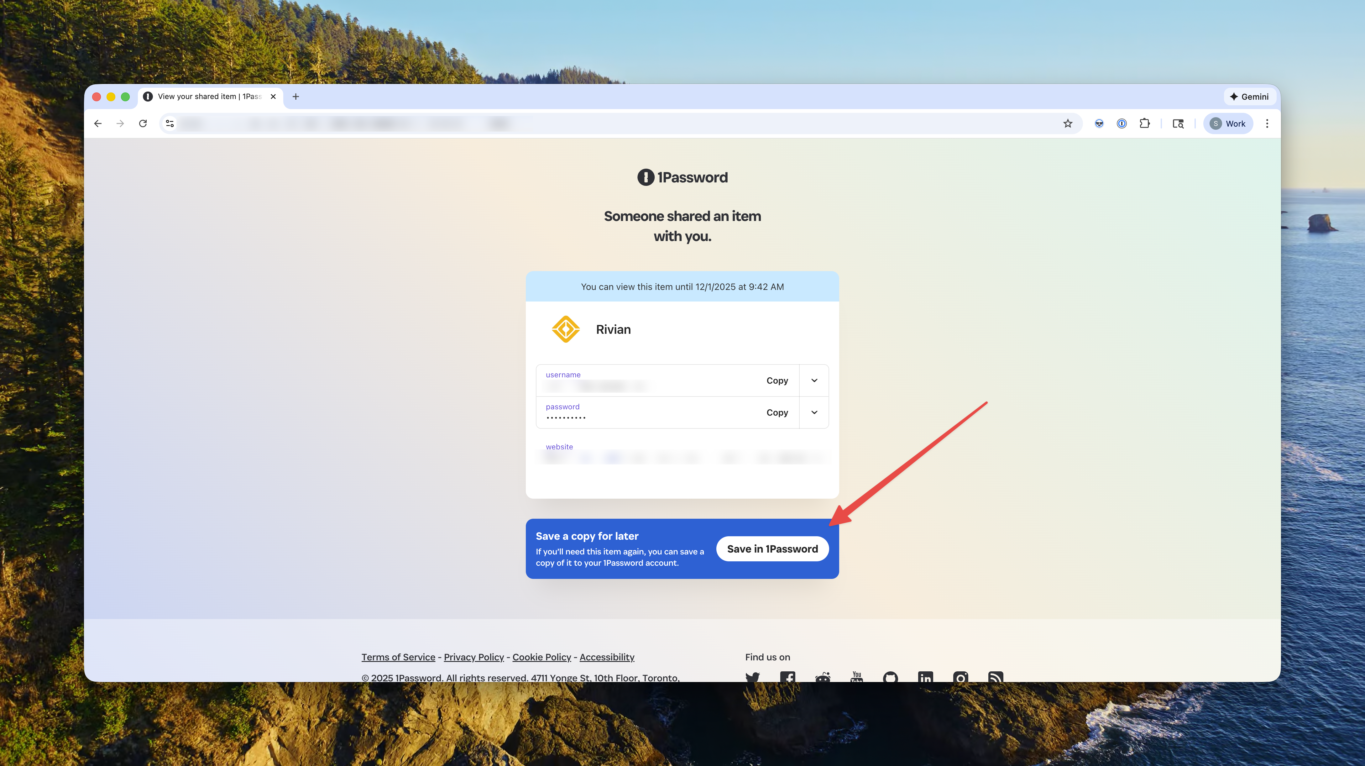 Good question and thank you for being so specific with what your goal is and your expectations!To achieve what you're looking for, you can share the item with the other user. If the user has the 1Password browser extension installed, when they open that link in their browser, they'll see the option to Save in 1Password.