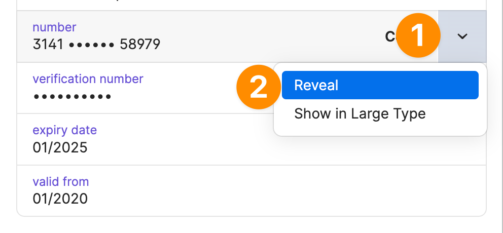 To reveal a concealed field, click the 🔽 down arrow next to it, then Reveal, like this: