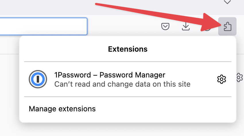 This guide will help you pin 1Password to the toolbar: If you don't see the 1Password icon in your browser's toolbar