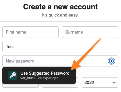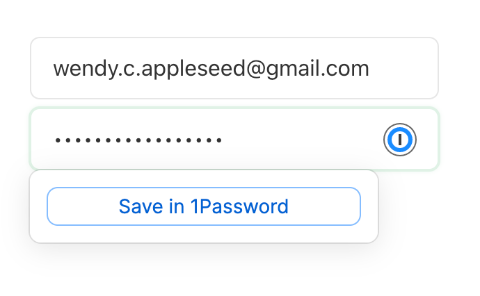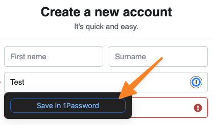 Save in 1Passwordor a suggested generated password in the inline menu of sign up pages: