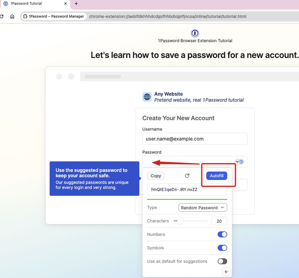Is there some 1Password setting/configuration combination that will prevent me from ever seeing the "Use Suggested Password" dropdown as shown here: