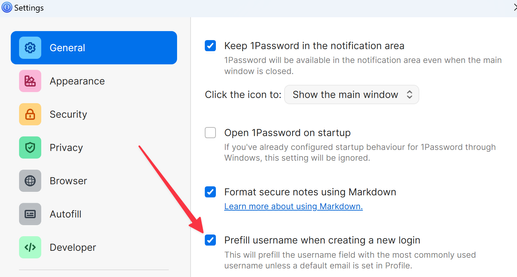 “We’ve added a new setting, “Autofill username when creating a new login”, under Settings > General. When turned off, 1Password won’t autofill the username field for new items created manually in the app.”