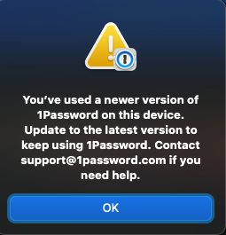 Have been running on v.8 beta and after having installed v.8 GA without moving data from previous v.7, I'm told that I've been running a newer version on launch of onepassword.